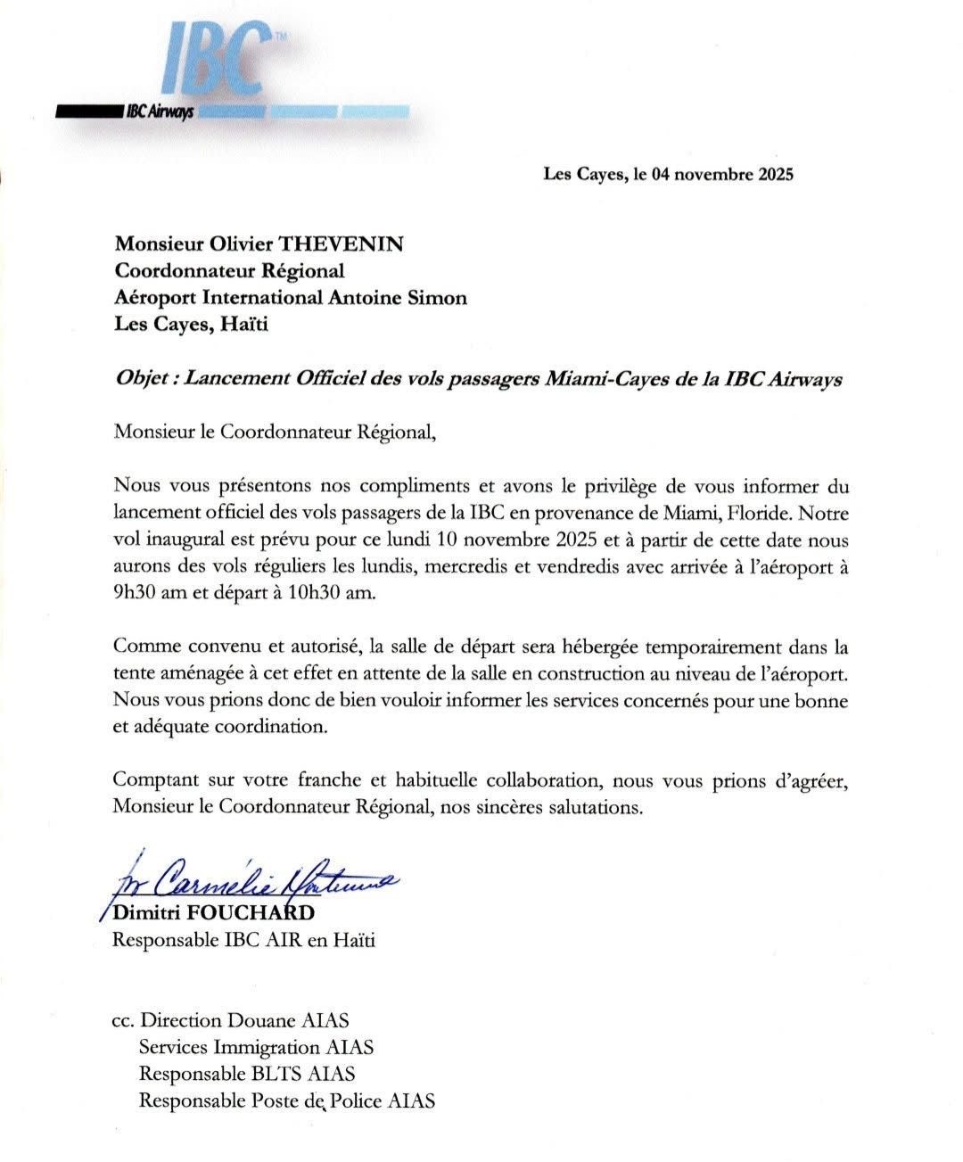 IBC Airways lance ses vols réguliers entre Miami et Les Cayes !